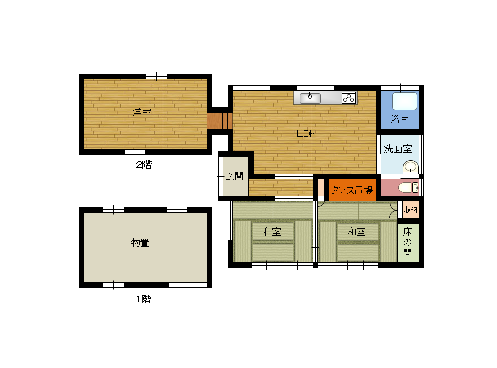 | ポイント | 飫肥法務局近くの静かな環境にある高台物件です。 古民家のような物置、屋根裏部屋(昭和26年築)に平家住宅を増築(平成10年12月)した造りになっております。 |